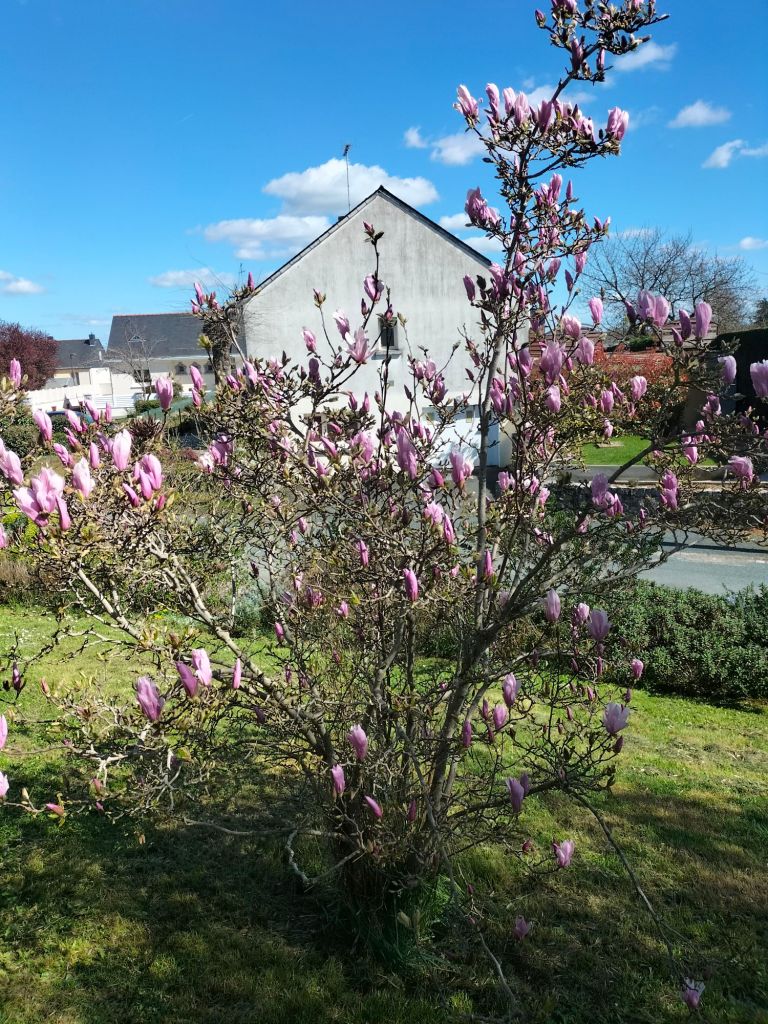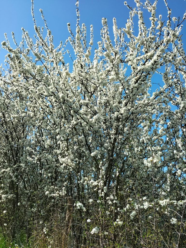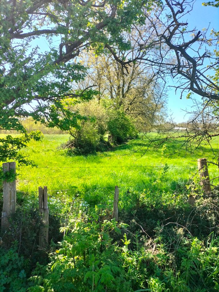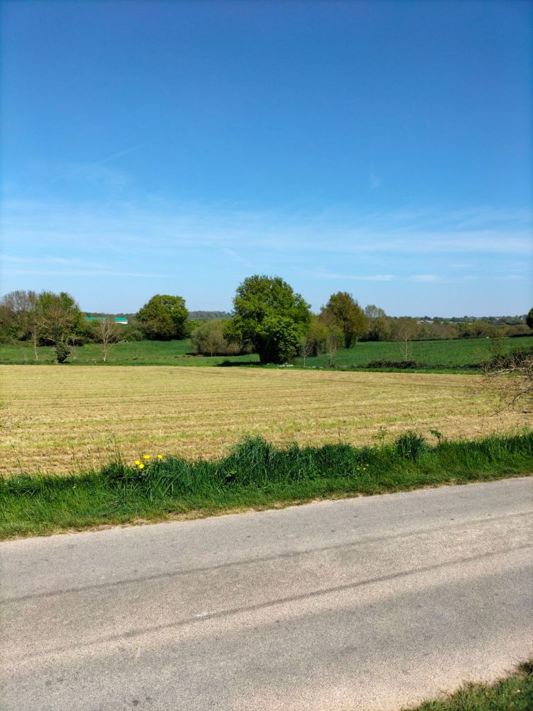 Voulez-vous un scoop ? Je ne suis pas tombé pendant la balade à pied. J’ai juste un peu ripé dans le fossé en voulant prendre des jolies fleurs en photo. Le deuxième scoop, c’est qu’il fait toujours très beau avec un petit vent tiède et du ciel « bleu d’Anjou », donc toujours un peu laiteux quand il fait très beau. Rien de neuf du côté médical, à part mes égratignures qui ne me donnent pas plus de soucis que cela. Je n’ai pas de douleurs particulières suite à la gamelle d’hier et c’est tant mieux. Le pouce gauche est le plus abîmé, il se remettra. Heureusement, le poignet a été épargné.