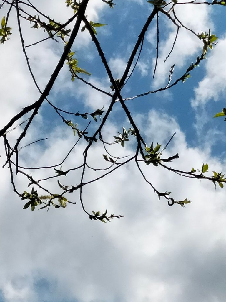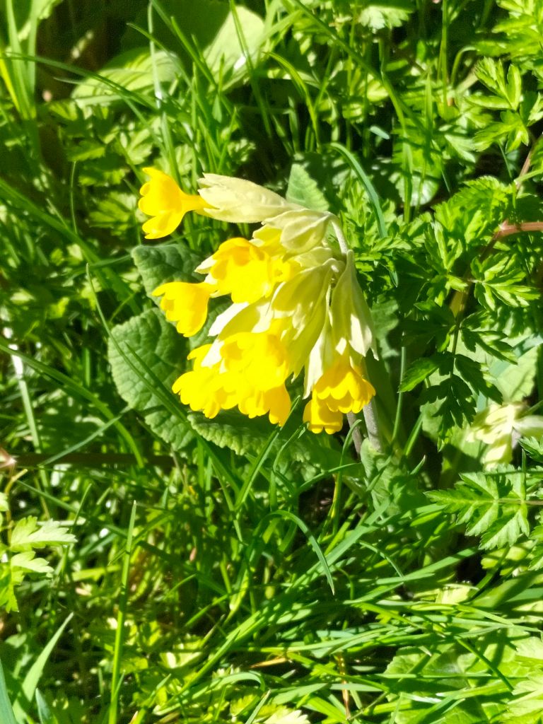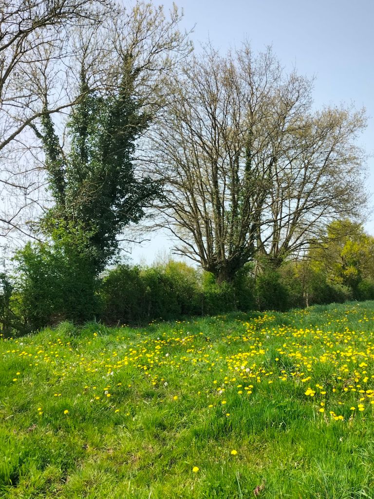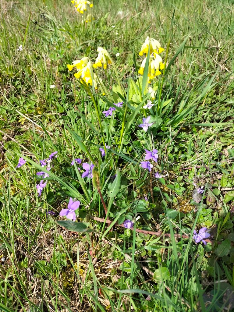Finalement, le temps s’est maintenu et nous rentrons de balade, 5.7 km avec nuages et éclaircies. Comme le grand soleil est mon ennemi, c’était parfait. Nous avons rencontré peu de monde, mais des vaches sympathiques qui ont accouru pour se faire prendre en photo, et les fleurs du printemps qui ne courent pas mais se balancent parfois un peu trop avec le vent. Nous sommes le dimanche des Rameaux et le vent est orienté sud-ouest.