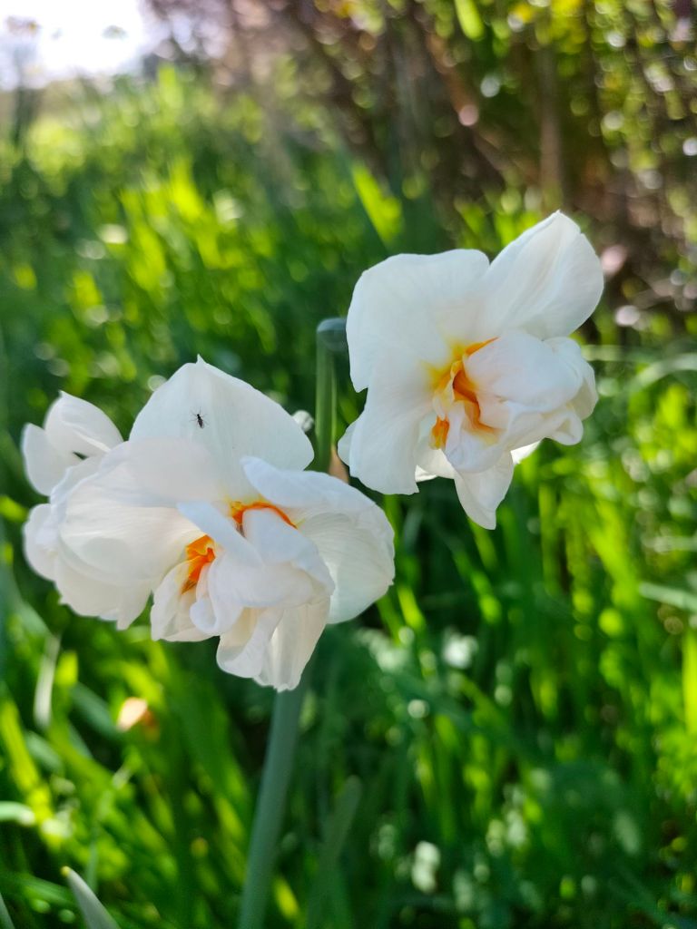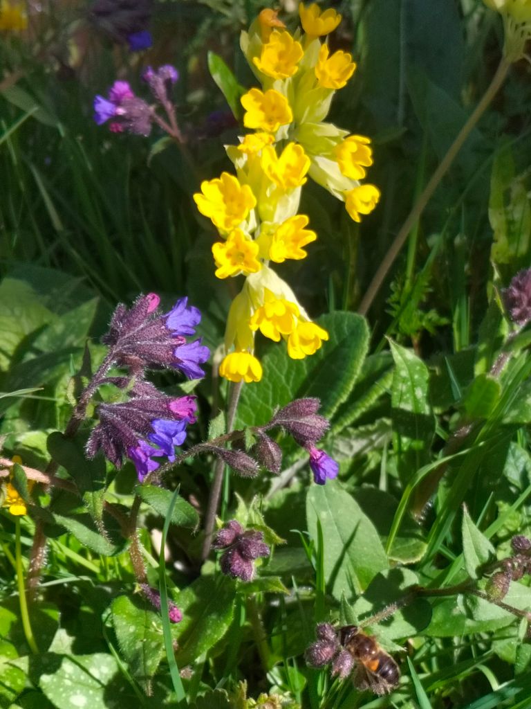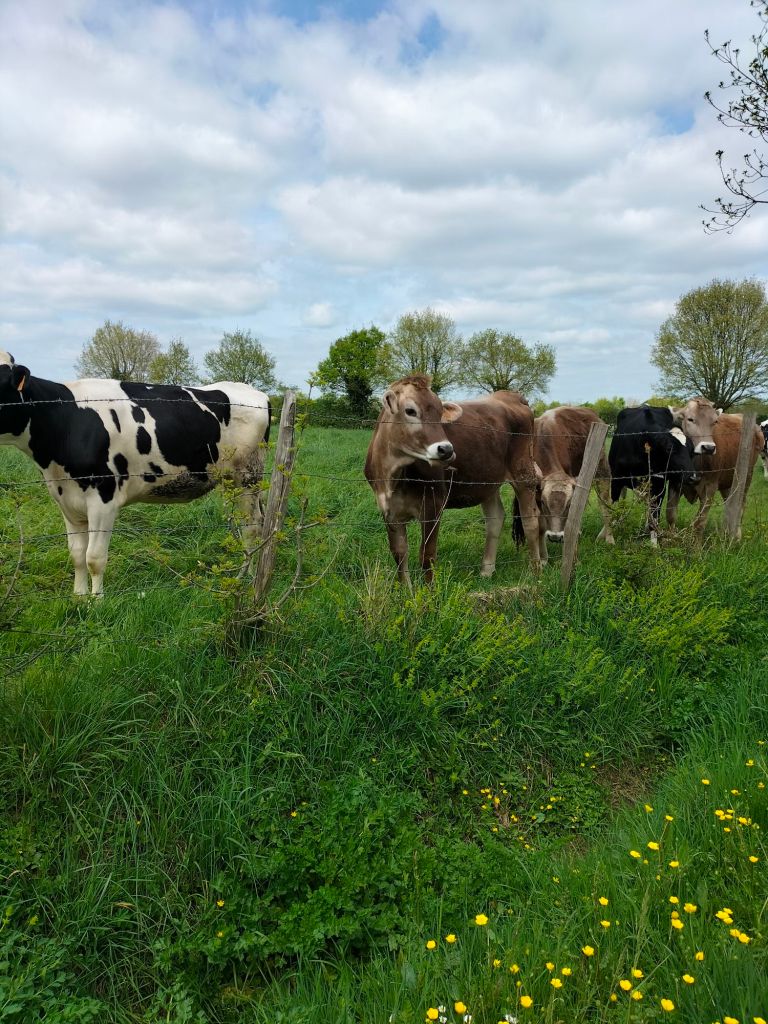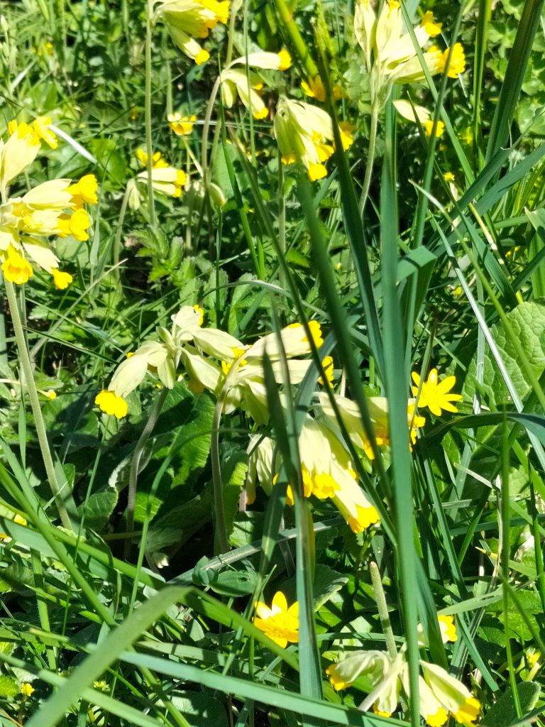 Finalement, le temps s’est maintenu et nous rentrons de balade, 5.7 km avec nuages et éclaircies. Comme le grand soleil est mon ennemi, c’était parfait. Nous avons rencontré peu de monde, mais des vaches sympathiques qui ont accouru pour se faire prendre en photo, et les fleurs du printemps qui ne courent pas mais se balancent parfois un peu trop avec le vent. Nous sommes le dimanche des Rameaux et le vent est orienté sud-ouest.
