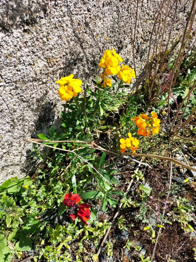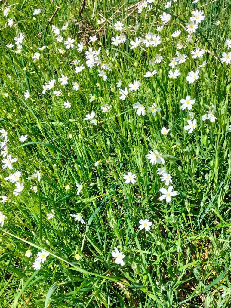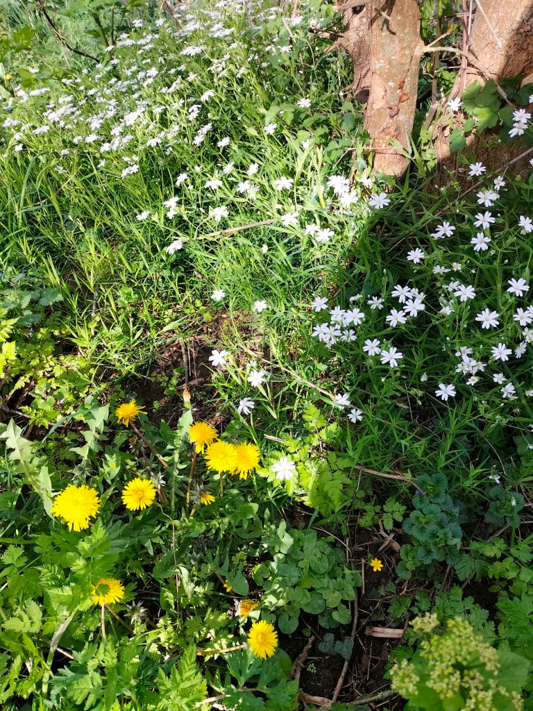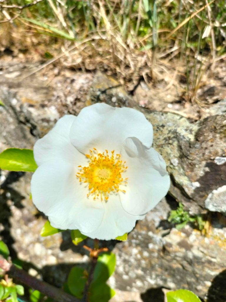 Voici donc quelques photos avec de nouvelles fleurs et une avancée en saison qui verdit les arbres. Les lilas sont presque en fleurs et les glycines aussi. En premier, vous verrez les premières fleurs de notre « rosier de Blanes » qui provient d’une bouture rapportée de Catalogne. Ce rosier se multiplie facilement et n’est pas difficile, contrairement à d’autres variétés. Ensuite, ce sont les fleurs des champs et des pieds de murs.