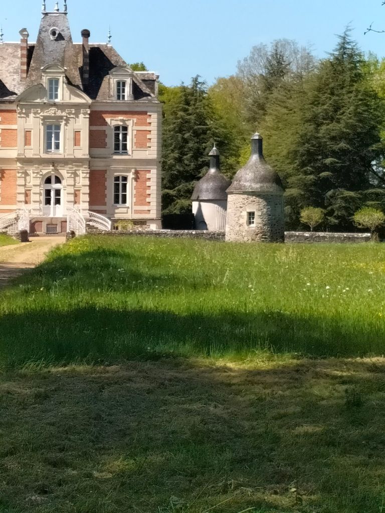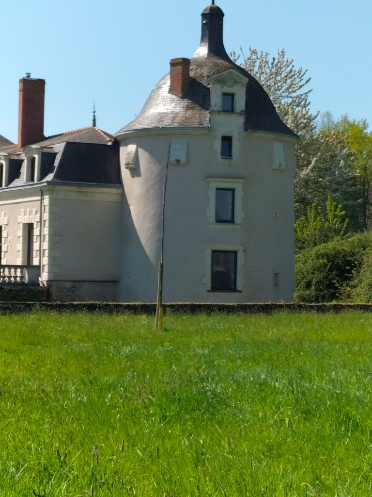 Le dernier château est le château du Pineau, situé à l’écart du bourg, bien caché aussi mais on a pu s’approcher. Il s’est refait une beauté avec une très belle restauration toujours en cours :